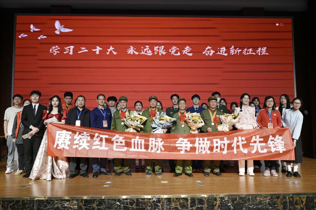 老兵宣讲结束后,同学们精心准备了形式各异的文艺节目表达对军人的敬仰之情和爱国之心。朗诵《致敬抗美援朝》、演讲《致敬永不褪色的你》、话剧《血脉》《红船初心》、合唱《错位时空》等精彩的节目表演,赢得场上观众的阵阵掌声,相信新时代的优秀芜职学子们,能够在老兵精神的感召下,踔厉奋发,笃行不怠。
