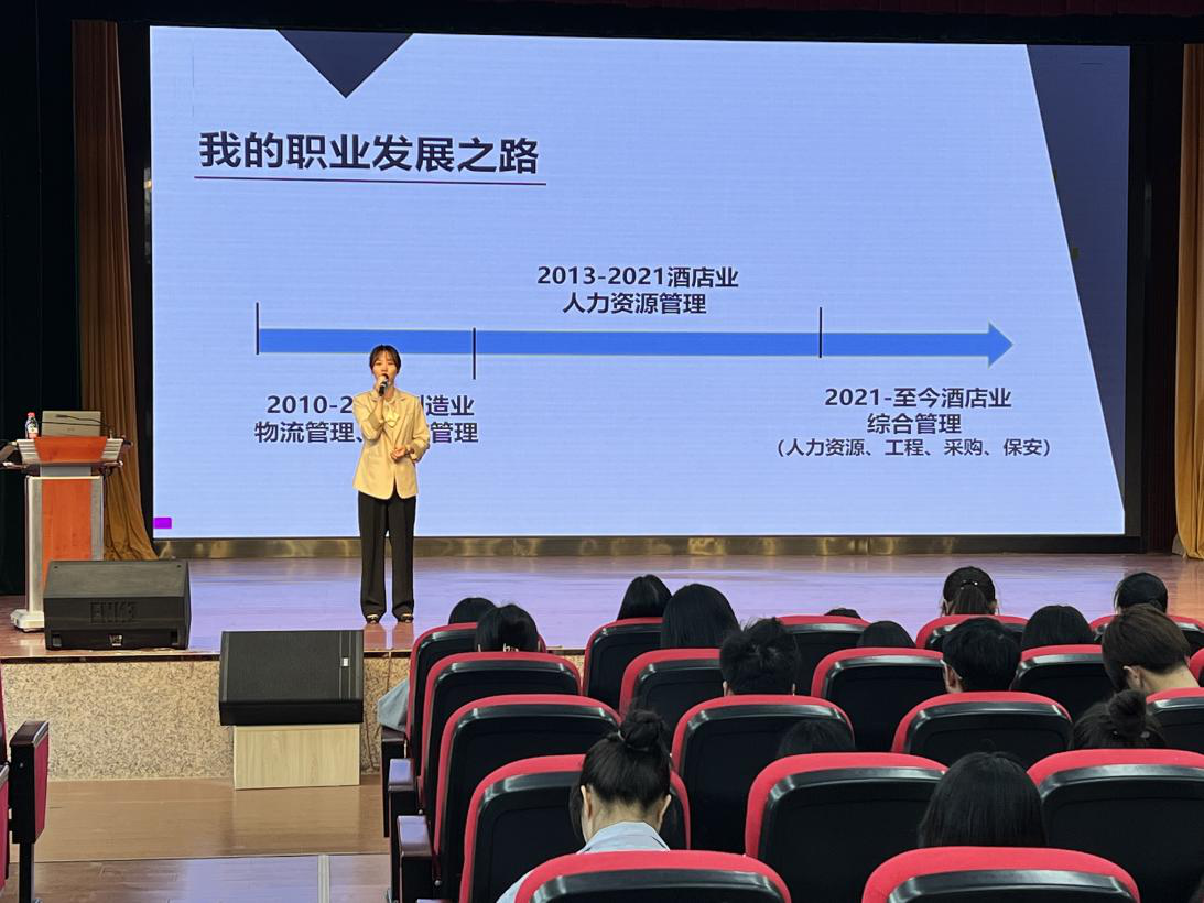 为加深全域旅游专业群学生对文旅行业的深入认知,提升学生的职业综合素养,4月10日——4月15日,人文旅游学院举办“匠心讲坛”系列专题讲座。此次活动,围绕“优秀校友进校园”“技能大师进校园”“行业专家进校园”“优秀企业家进校园”等模块,分别邀请了学院优秀毕业生代表——杭州开源森泊投资旅游有限公司运营总监丁春丽,全国导游技能大赛铜奖、省赛金奖获得者、芜湖市技能大师——芜湖童乐军国际旅行社有限责任公司总经理周文,芜湖市五一劳动奖章获得者——芜湖市文化和旅游局资源开发科科长王娜,荒野教育咨询有限公司创始人周科,芜湖市德信悦圆方酒店综合管理部负责人卢萍作为主讲嘉宾,学院党政领导、专业教师、班级辅导员和2022级全域旅游专业群学生328人参与了此次活动。