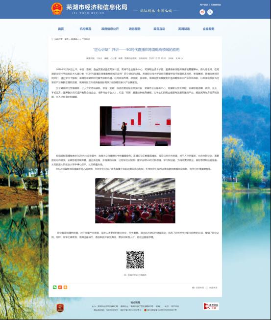 2020年12月4日上午,中国(安徽)自由贸易试验区芜湖片区、芜湖市企业服务中心、芜湖职业技术学院,邀请安徽惊艳传媒库云霞董事长、陈九阳老师,在芜湖职业技术学院南区大礼堂分享“5G时代直播在跨境电商领域的应用”匠心讲坛的讲座。芜湖职业技术学院经济管理学院市场营销本科班、新零售班、跨境电商班的同学们,通过学习了解到:芜湖片区紧抓时代赋予的新机遇、以开放促改革、促发展、促创新。芜湖自贸区是聚焦打造战略性新兴产业的先导区,以芜湖自贸区为代表的产业集群正蓬勃发展,芜湖片区正形成具备国际竞争力的战略性新兴产业集聚区。
