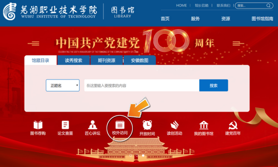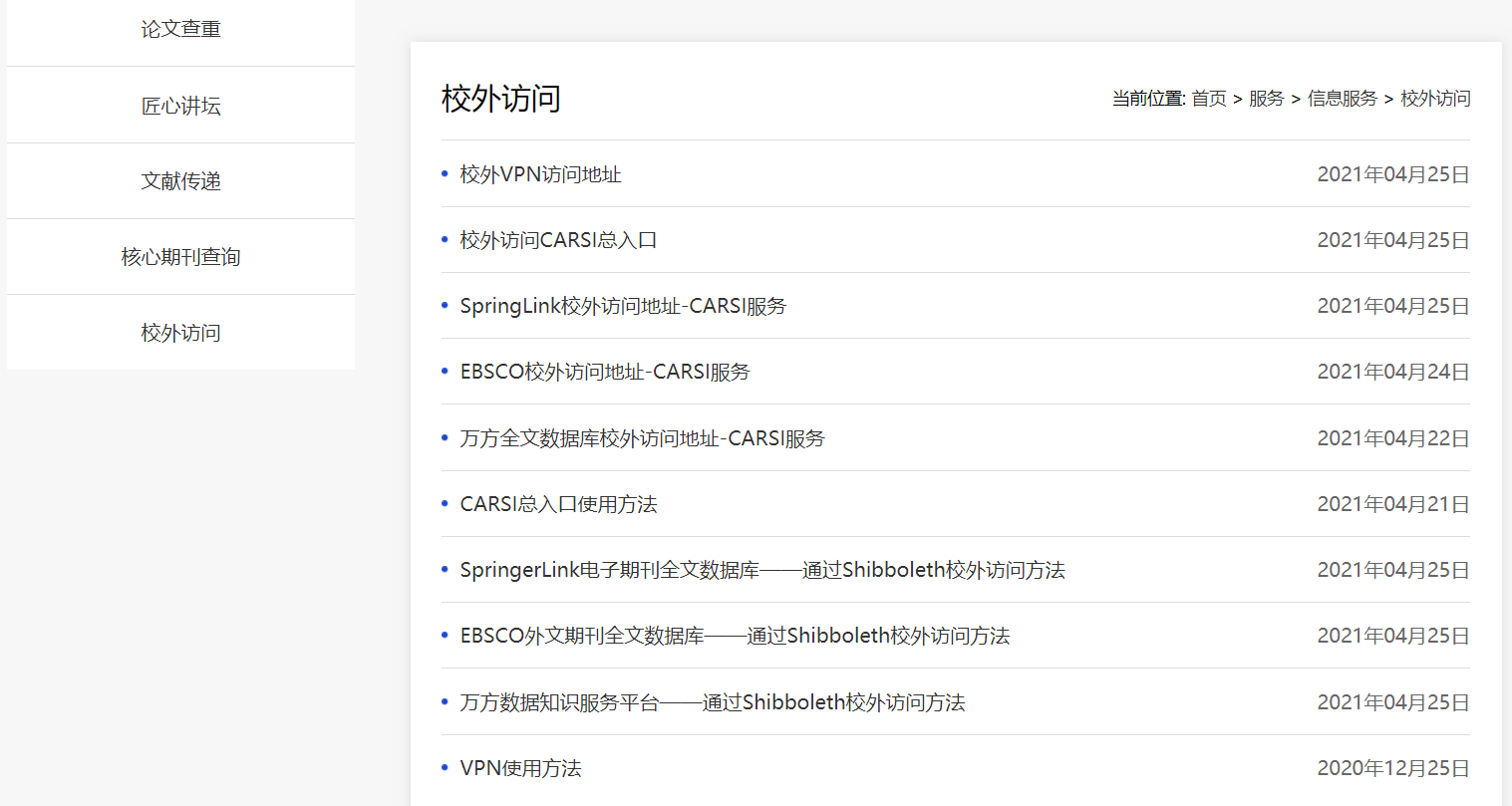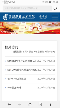 1、登录图书馆网站,点击图标“校外访问”,打开页面中点击“SpringLink校外访问地址-CARSI服务” 链接,直接跳转到第4步