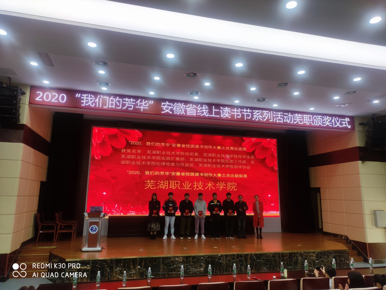 11月8日下午,2020“我们的芳华”安徽省线上读书节系列大赛颁奖典礼在南校区图书馆学术报告厅顺利举行。本次2020“我们的芳华”安徽省线上读书节系列大赛由安徽省高校图书情报工作委员会主办、北京一博千禧科技有限公司(语林活动云)承办。全省75所高校近5000名师生积极响应参与。其中“阅读打卡”活动共有3069名师生参与,活动期间累计阅读时长超过10万小时;525名师生完成了“连续21天以上”阅读打卡,促使广大师生养成每日阅读的好习惯。在“个人创作”的7项系列活动中,共征集各类型作品2940幅。我校学生共获得一等奖6名,二等奖22名,三等奖39名,展现了我校学生的优秀创作能力,同时我校被评为“优秀组织奖”。