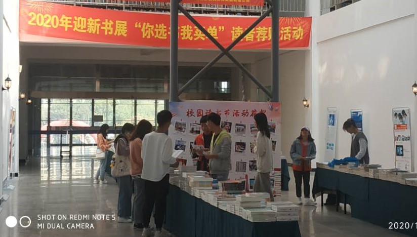 今年图书馆还联合北京世家名典文化发展有限公司,推出2020迎新书展“你选书我买单”读者荐购活动。组织调集多种最新、最畅销图书,在图书馆集中展出,供学校师生现场荐购。 图书馆二楼展厅有多幅图文并茂的海报和宣传展板,色彩鲜明,内容精炼,吸引了大批新生驻足观看。“欢迎2020级新同学新读者”的大幅海报,内容包括馆长寄语、图书馆简介、图书馆常用数字资源、图书馆信息互动方式等,以最简洁、直观的方式给了新生最需要快速了解的内容。